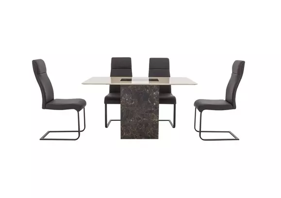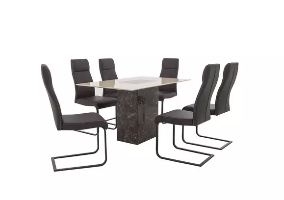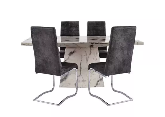 Host your future dinner parties on a beautiful dining table and chairs set from furniture village. Solid marble dining table has a beautiful light grey marbled finish. With millions of unique furniture, décor, and housewares options, we'll help you find the perfect solution for your style and your home. Bring fresh style into your home with our dining room table and chairs. And, there's something to suit all space sizes with compact dining room sets and extending dining tables too.