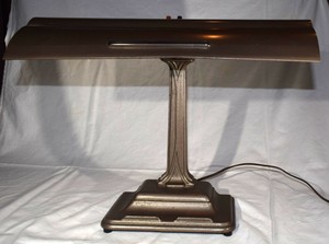 Authentic art deco brown hooded fluorescent desk lamp with the clock.
